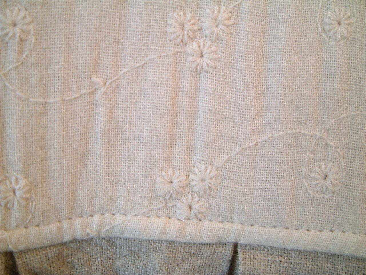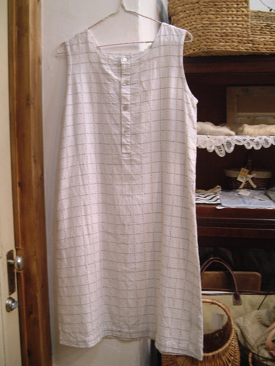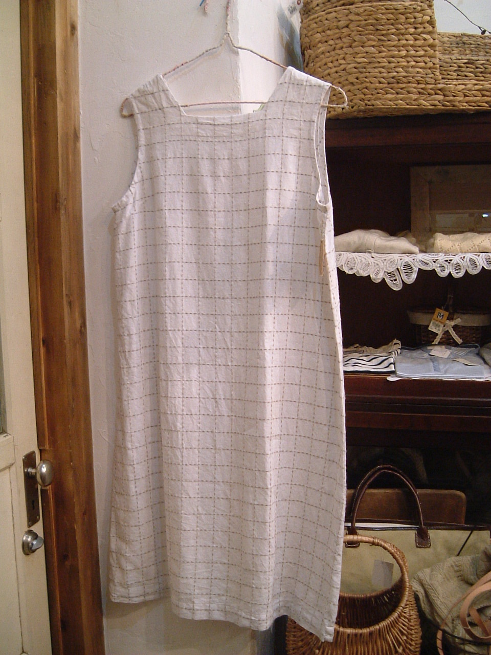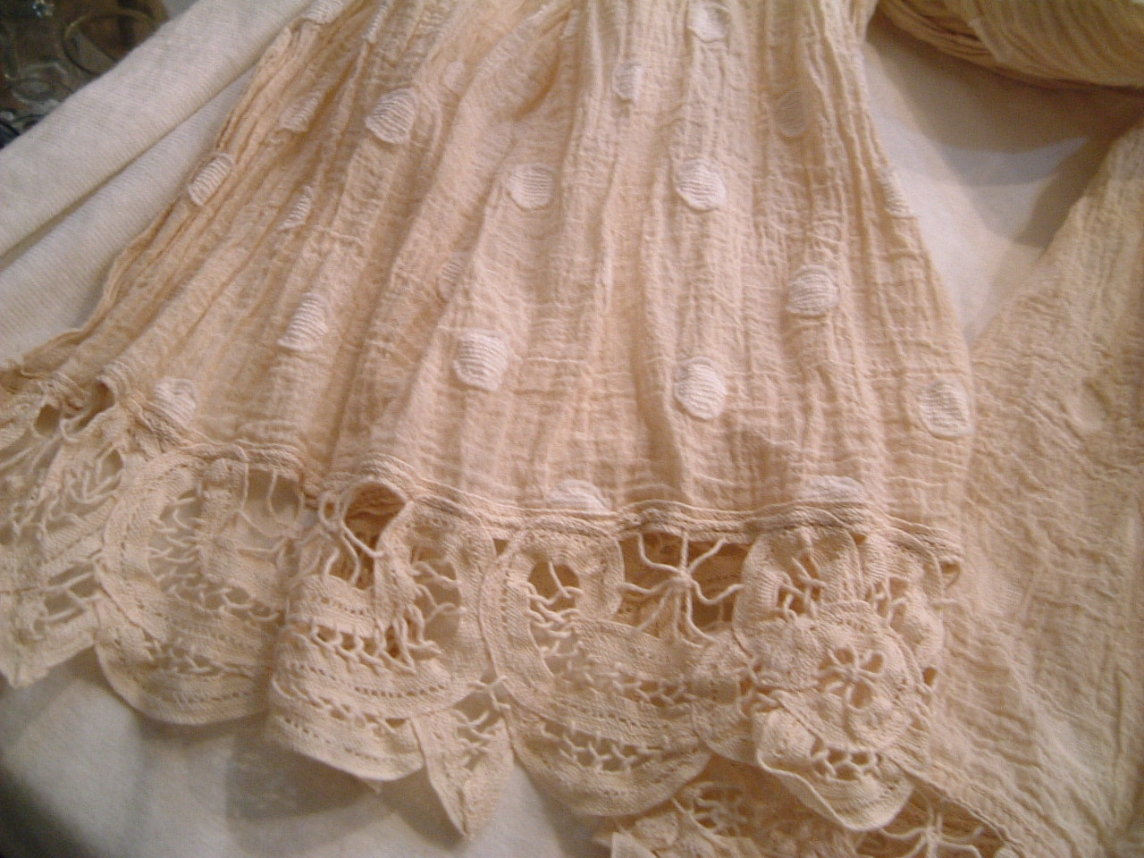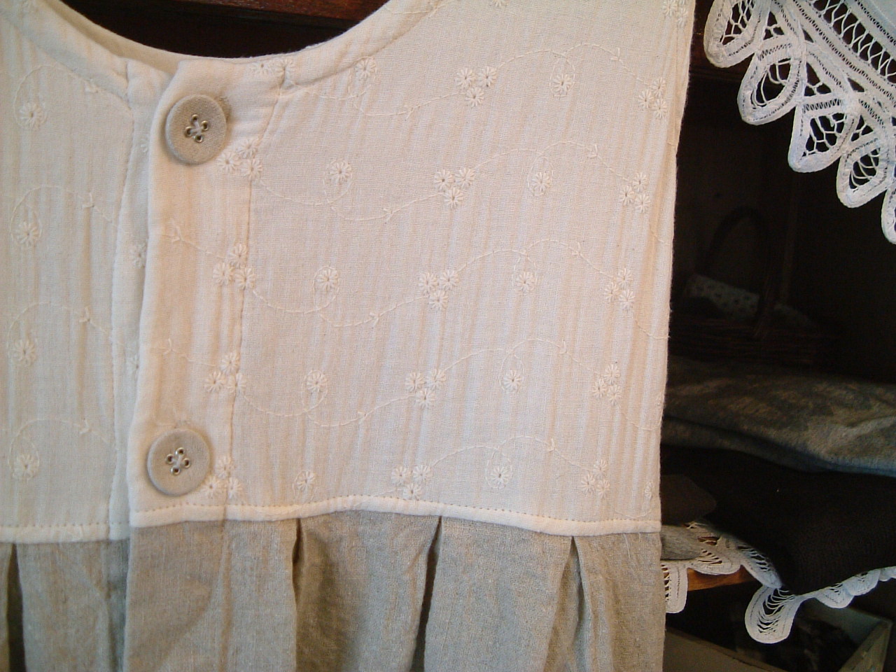 今日の画像は、久しぶりにアンティークレースを使った白リネンのワンピースです。