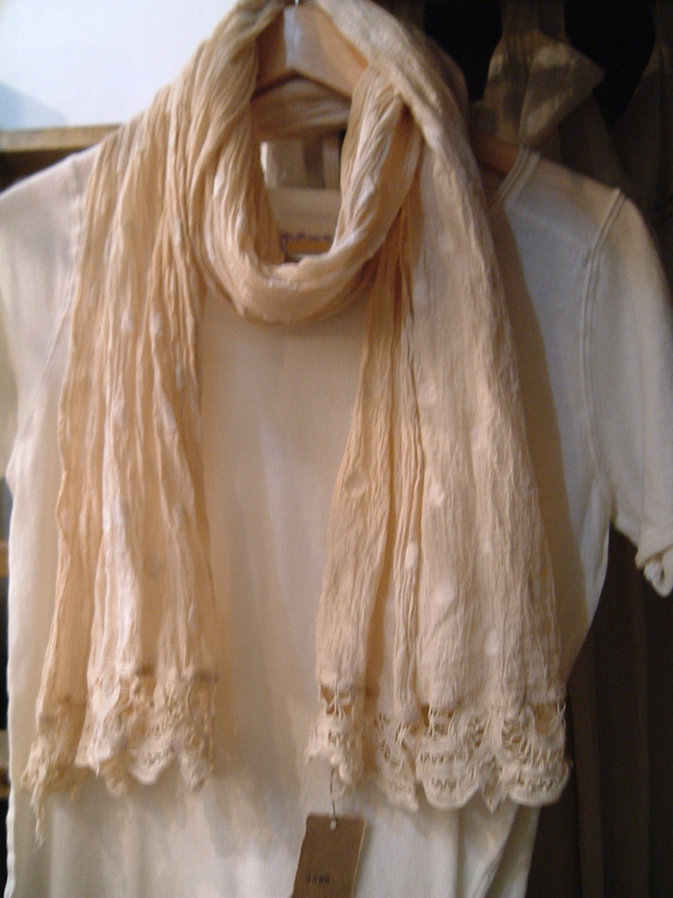 みずたまの薄手に裁ちっぱなしのバテンレースのストール