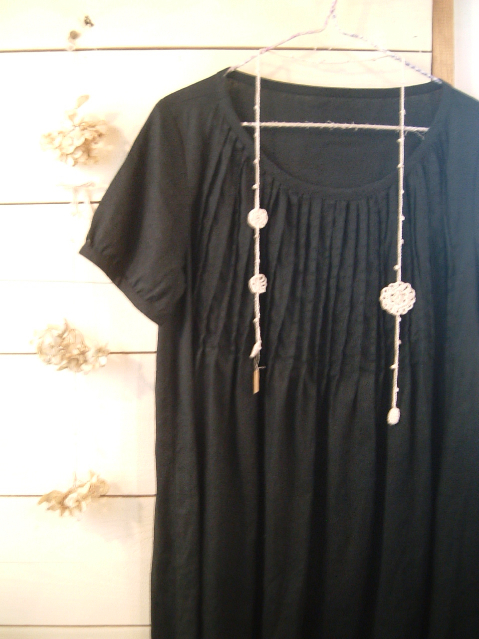 前々からず~と作りたかったもので、黒リネンのワンピの下にぴったりですよ。