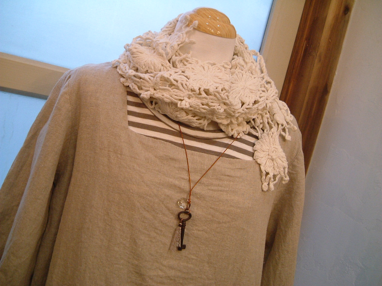 sawaさんデザインのアンティークキーのネックレスを合わせてみました。
