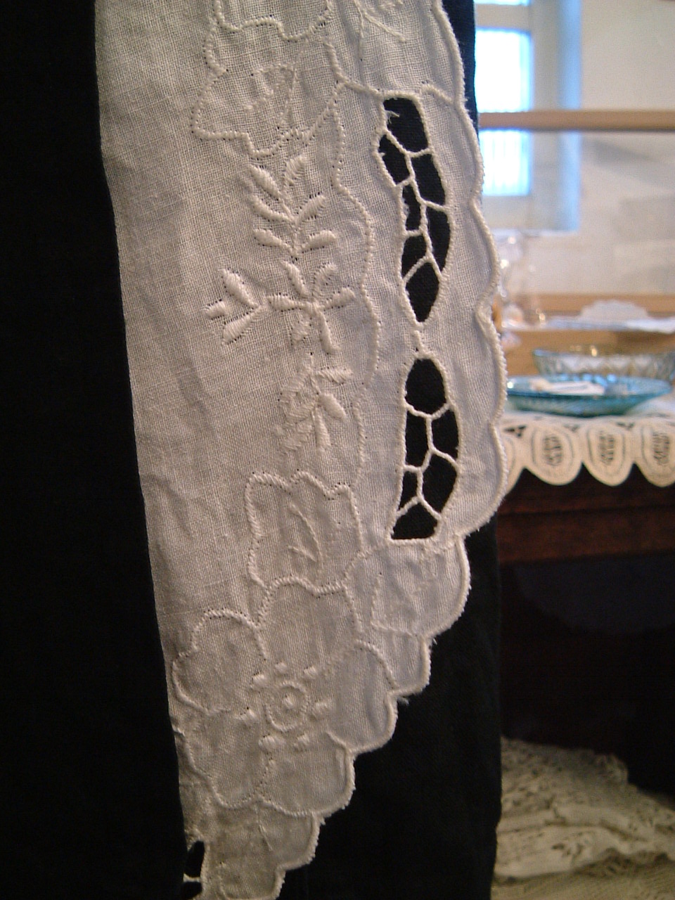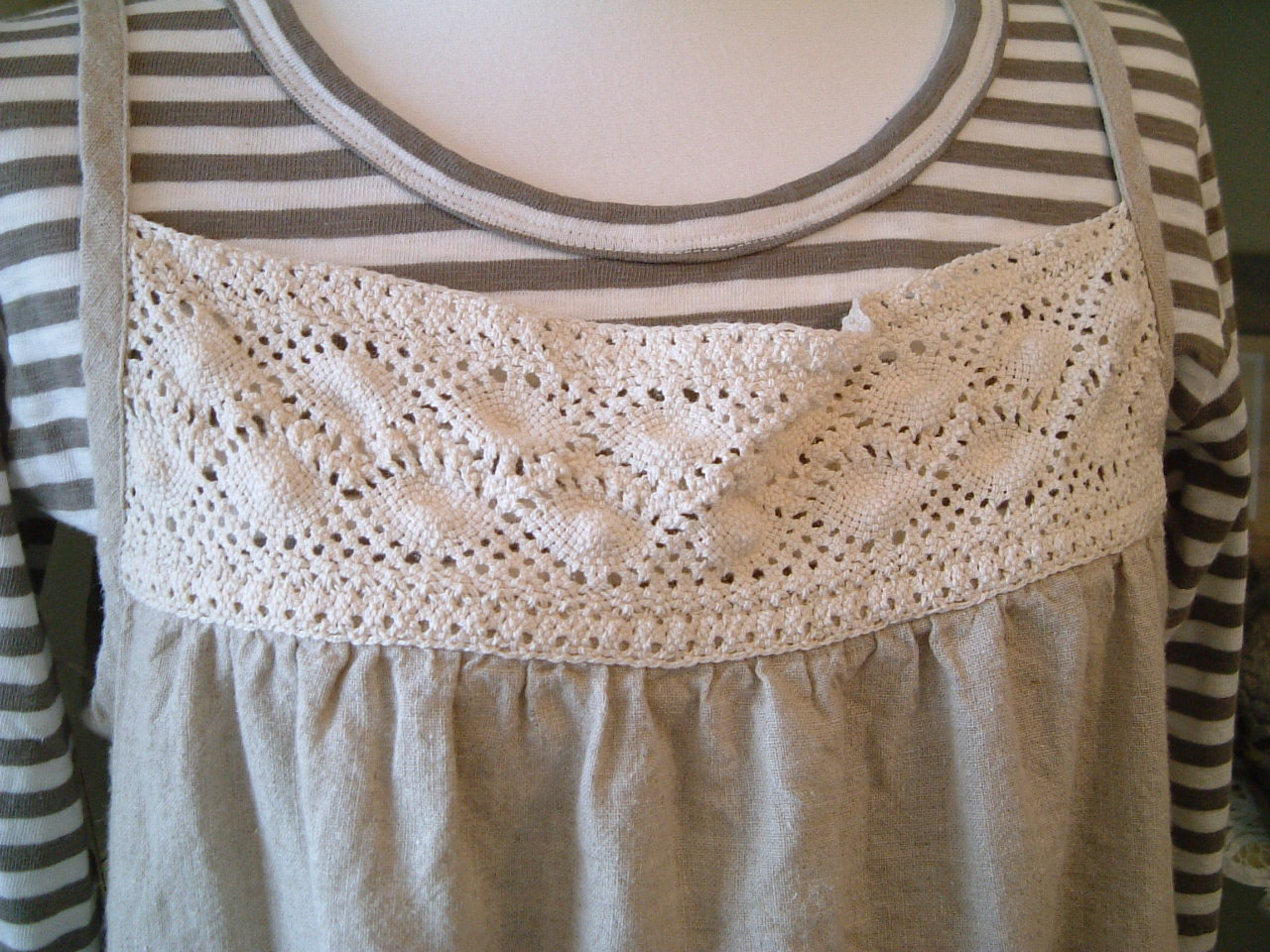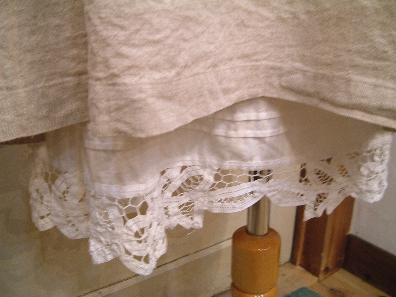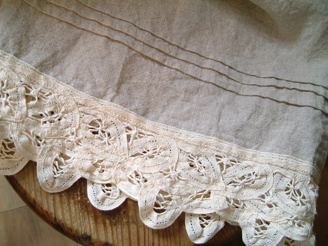 レース部分も、リネン地。