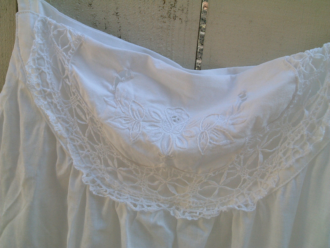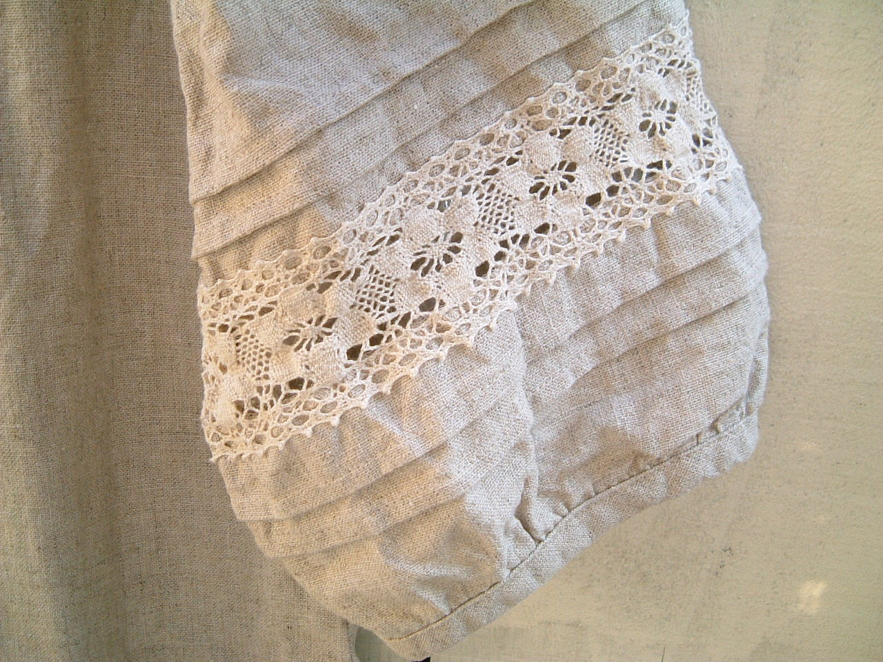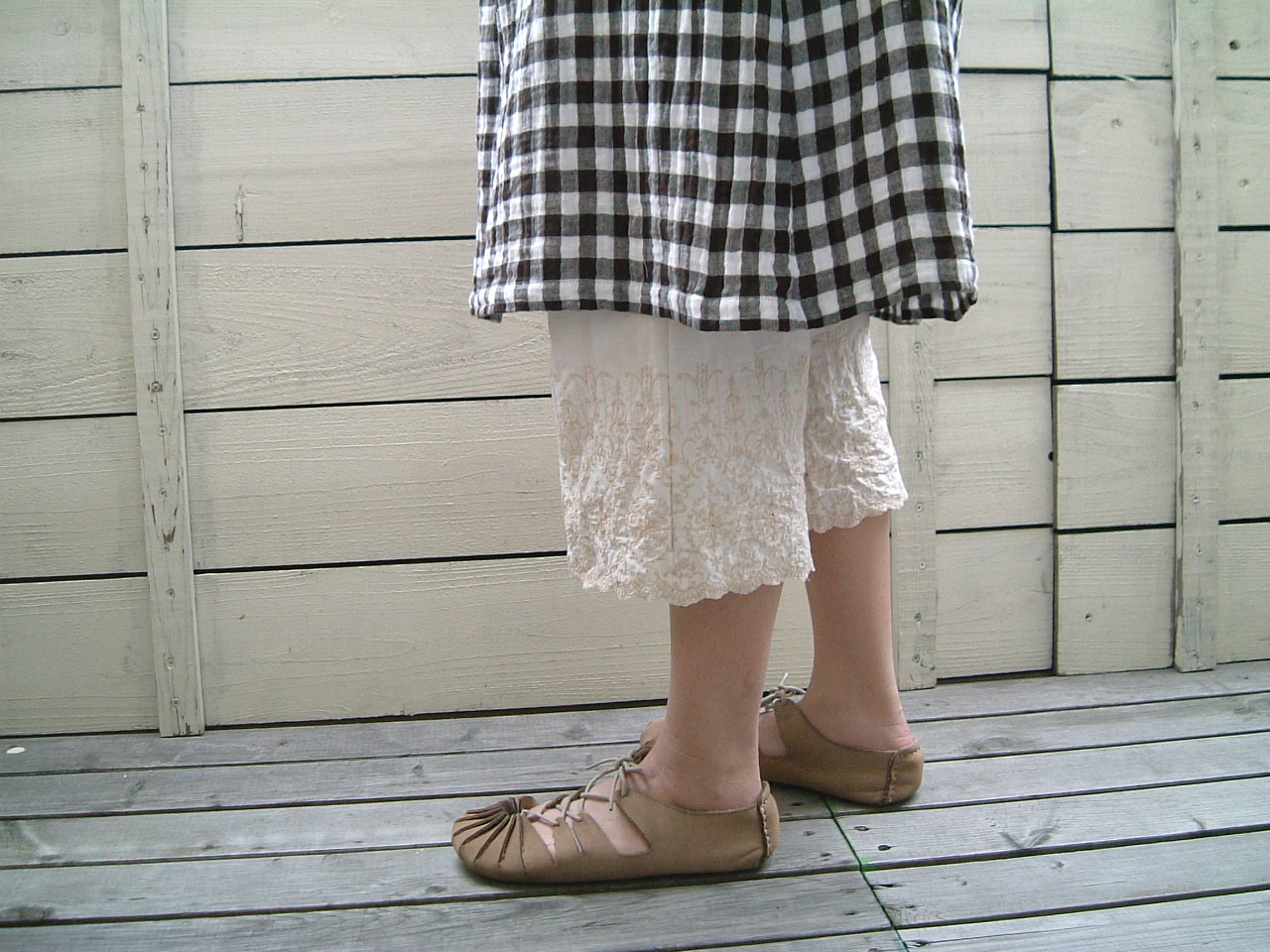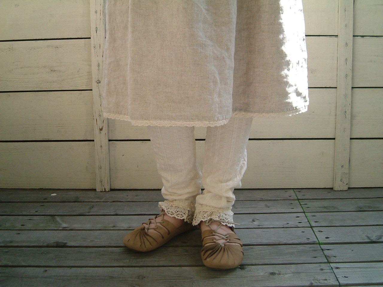 白いリネンのキャミワンピ、ちょっとアンティークリネンのような刺繍が、とても気に入ってます。