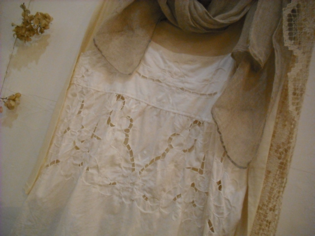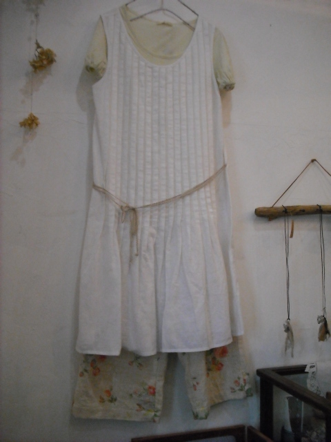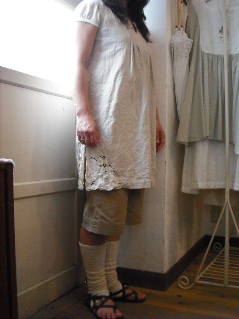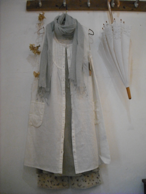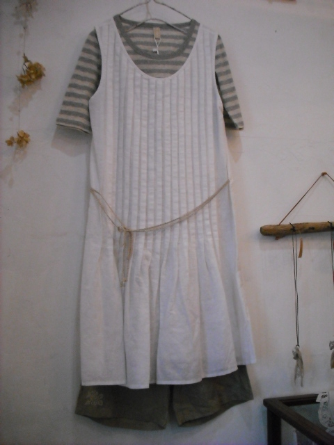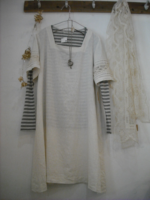 以前から人気のオフホワイトのリネンでAラインワンピース